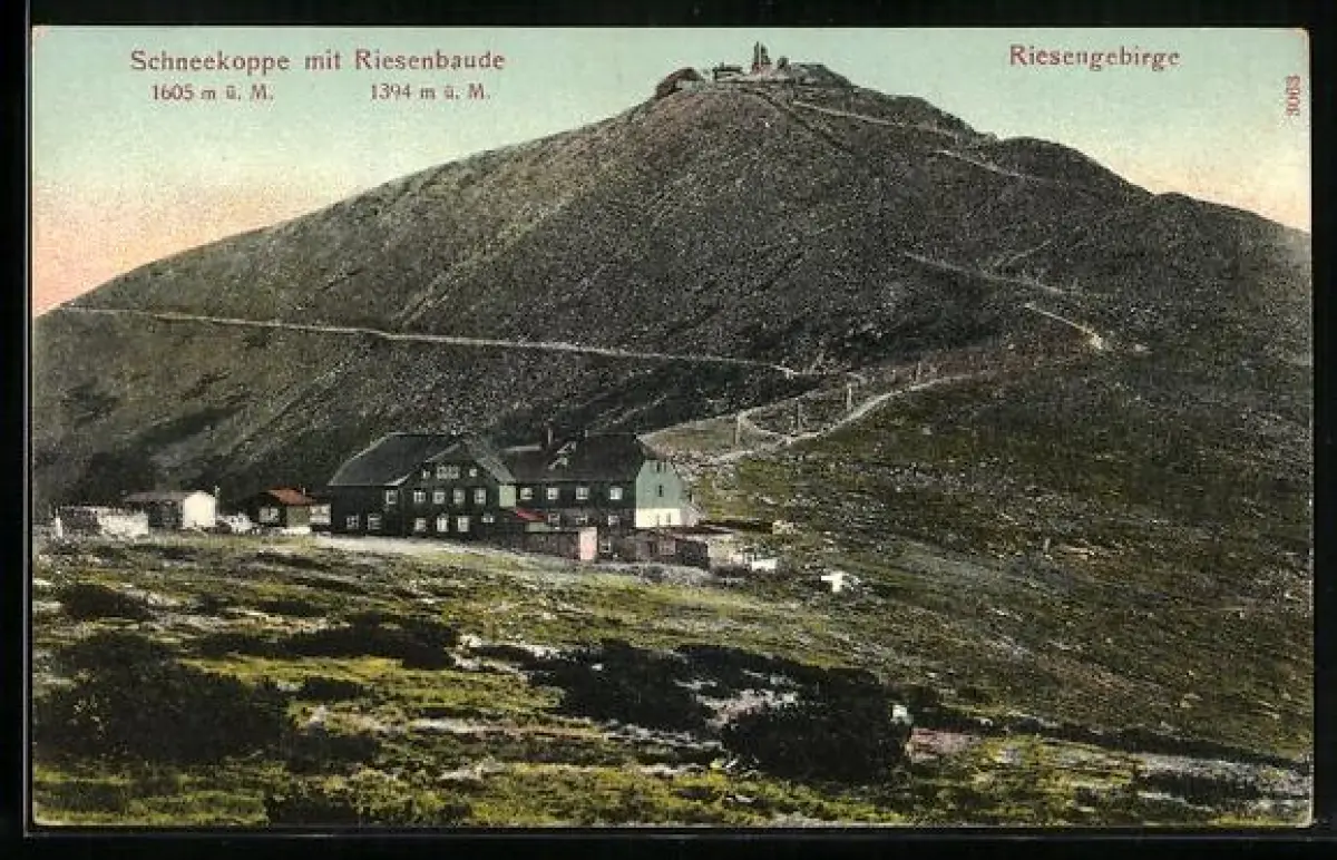AK Schneekoppe /Riesengebirge, Hütte am Fusse des Bergs