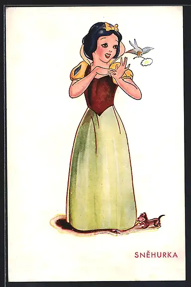 AK Schneewittchen mit einem Vogel, Comic