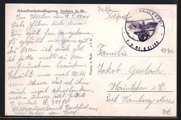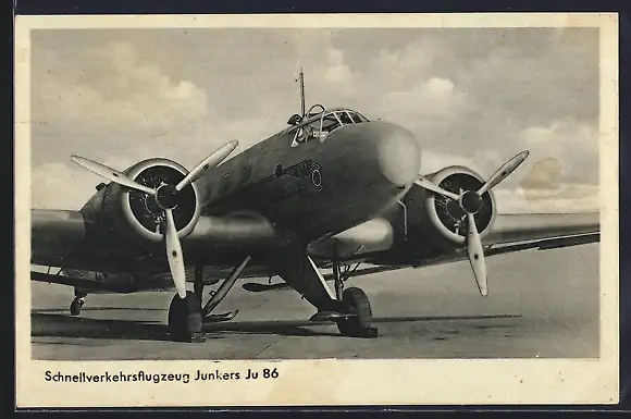 AK Schnellverkehrsflugzeug Junkers Ju 86 startbereit auf dem Flugfeld