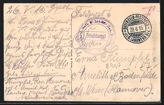 alte Ansichtskarte, gelaufen 1915, Eckknick li. unten, guter Zustand