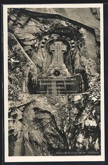 AK Schöllenen, Blick auf das in Stein gehauene Suworoff-Denkmal