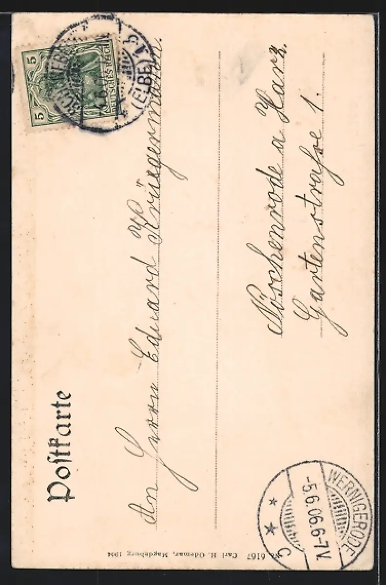 alte Ansichtskarte, gelaufen 1906, Stempelspur, guter Zustand
