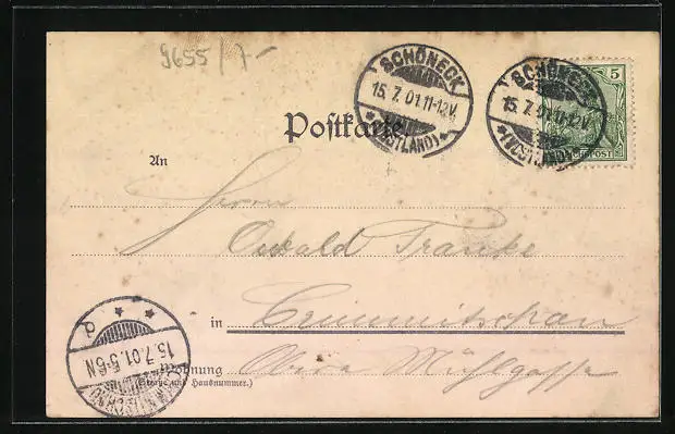 alte Ansichtskarte, gelaufen 1901, Stempelspur, guter Zustand