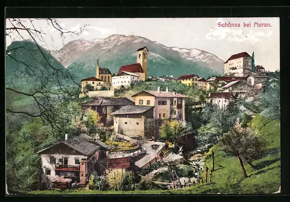 AK Schönna b. Meran, Totalansicht mit Kirche