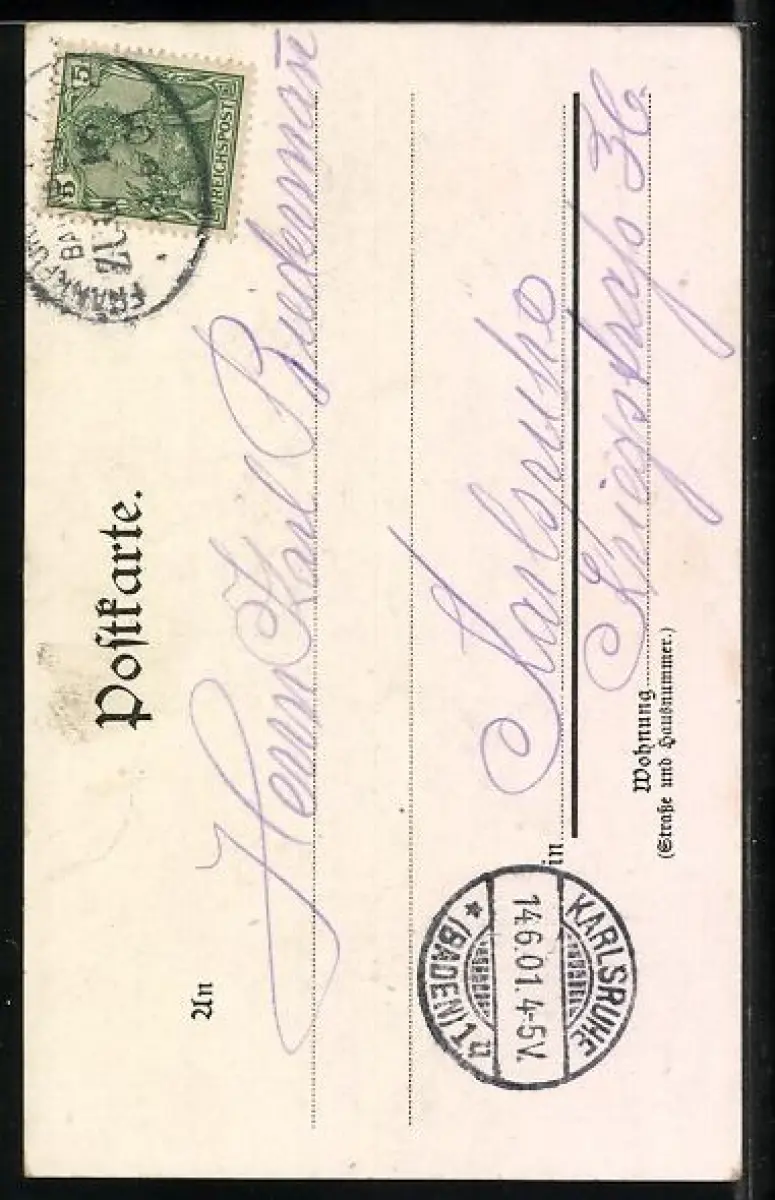 alte Ansichtskarte, gelaufen 1901, Bugspur re. mittig, guter Zustand
