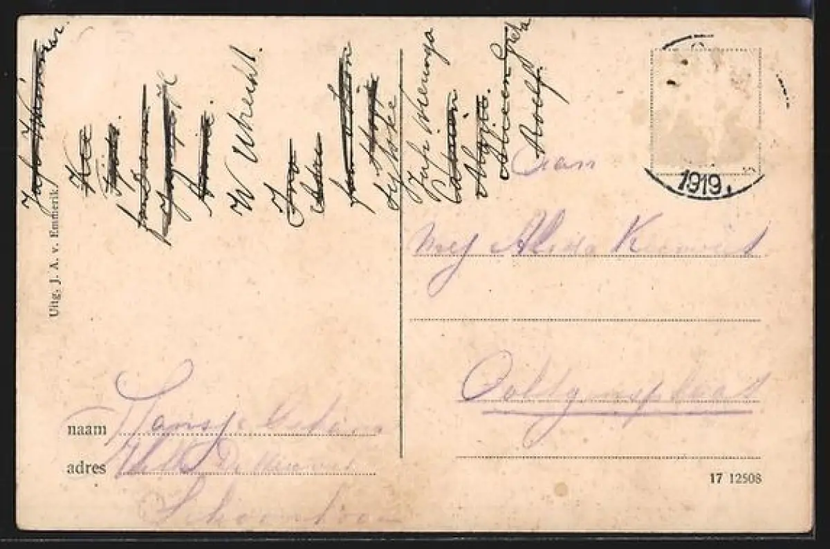 alte Ansichtskarte, gelaufen 1919, Briefmarke entfernt, rückseitig Oberflächenschaden, guter Zustand