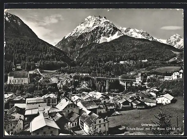 AK Schuls /Unterengadin, Ortsansicht mit Piz Pisoc