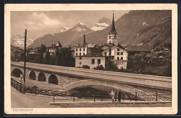AK Schwanden /GL, Ortsansicht mit Brücke und Kirche