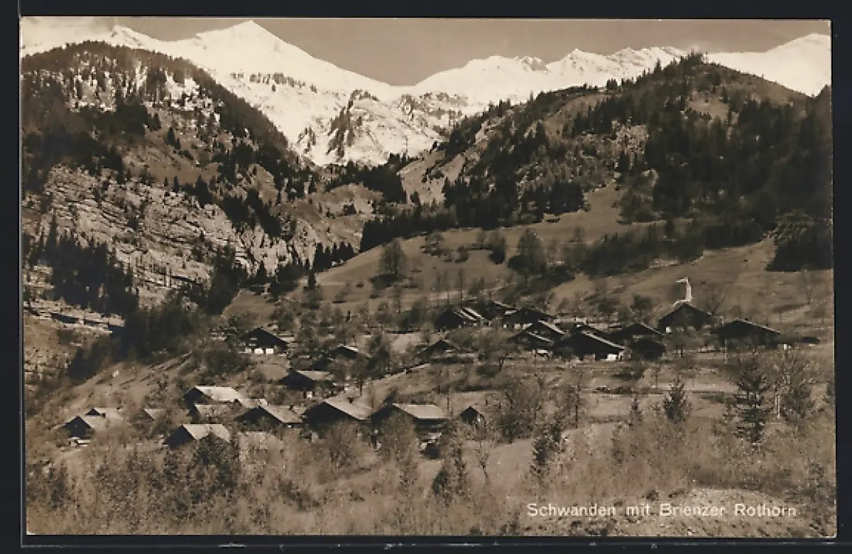 AK Schwanden bei Brienz, Totalansicht mit Brienzer Rothorn