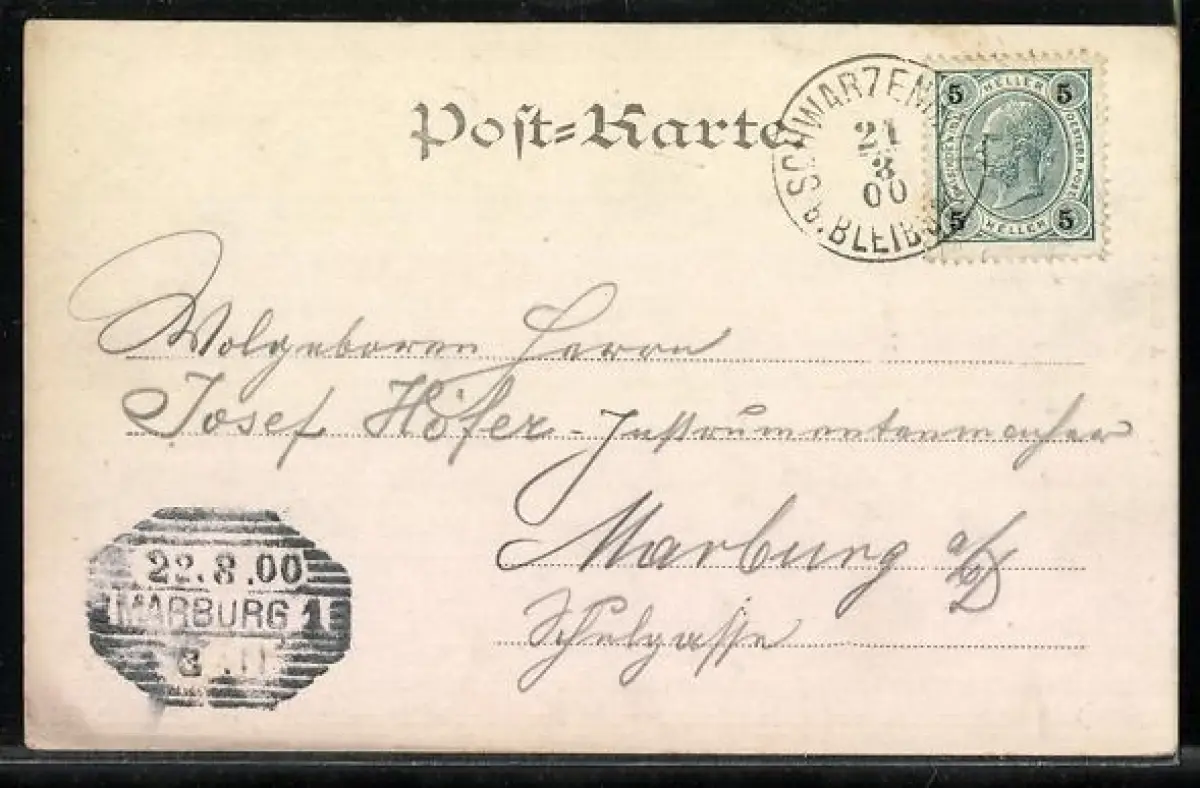 alte Ansichtskarte, gelaufen 1900, guter Zustand