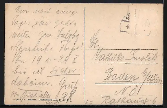 alte Ansichtskarte, gelaufen, Briefmarke entfernt, guter Zustand