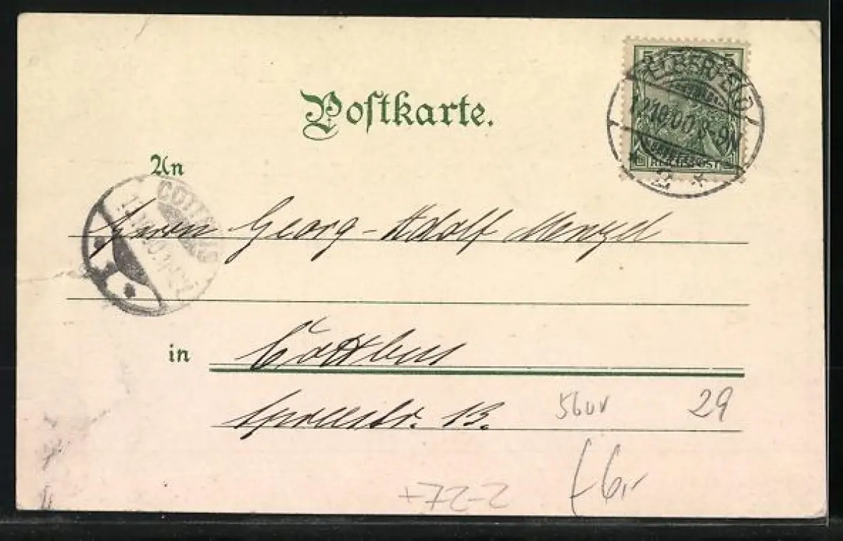 alte Ansichtskarte, gelaufen 1900, guter Zustand
