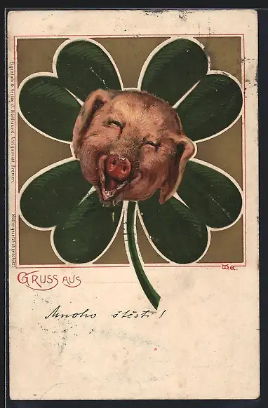 AK Schwein in einem Kleeblatt