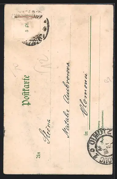 alte Ansichtskarte, gelaufen, Briefmarke entfernt, rückseitig Oberflächenschaden, guter Zustand