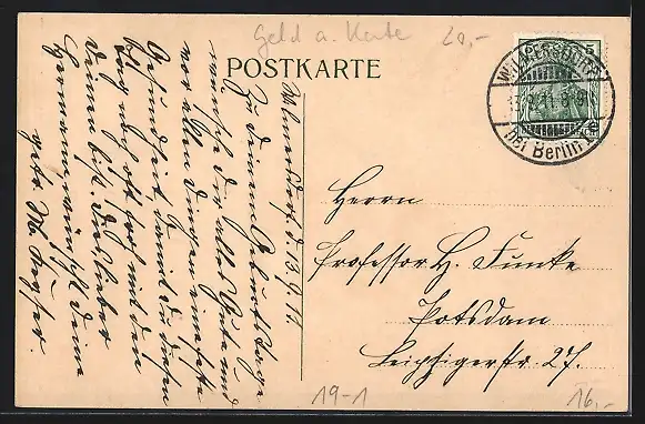 alte Ansichtskarte, gelaufen 1911, guter Zustand