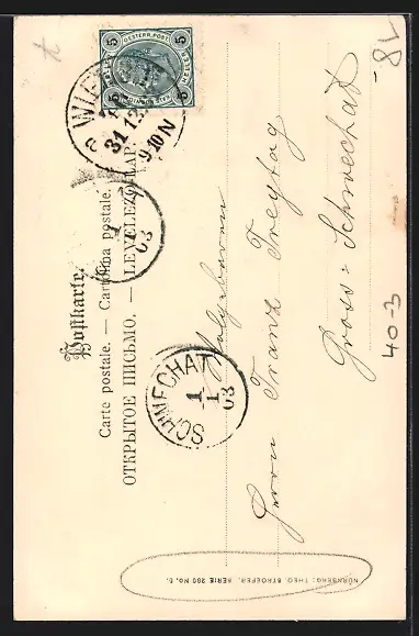 alte Ansichtskarte, gelaufen 1903, Eckknick oben rechts, guter Zustand