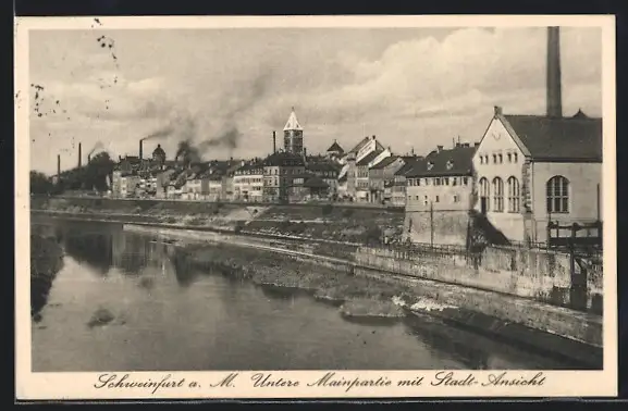 AK Schweinfurt a. M., Untere Mainpartie mit Stadt-Ansicht