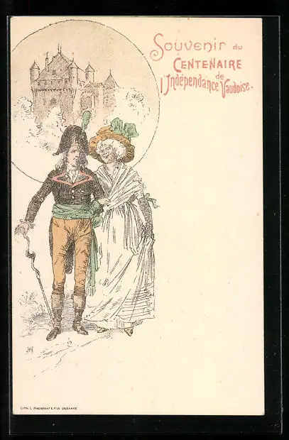 AK Schweiz, De l`Indépendance Vaudoise, Mann in Uniform und Frau im Kleid