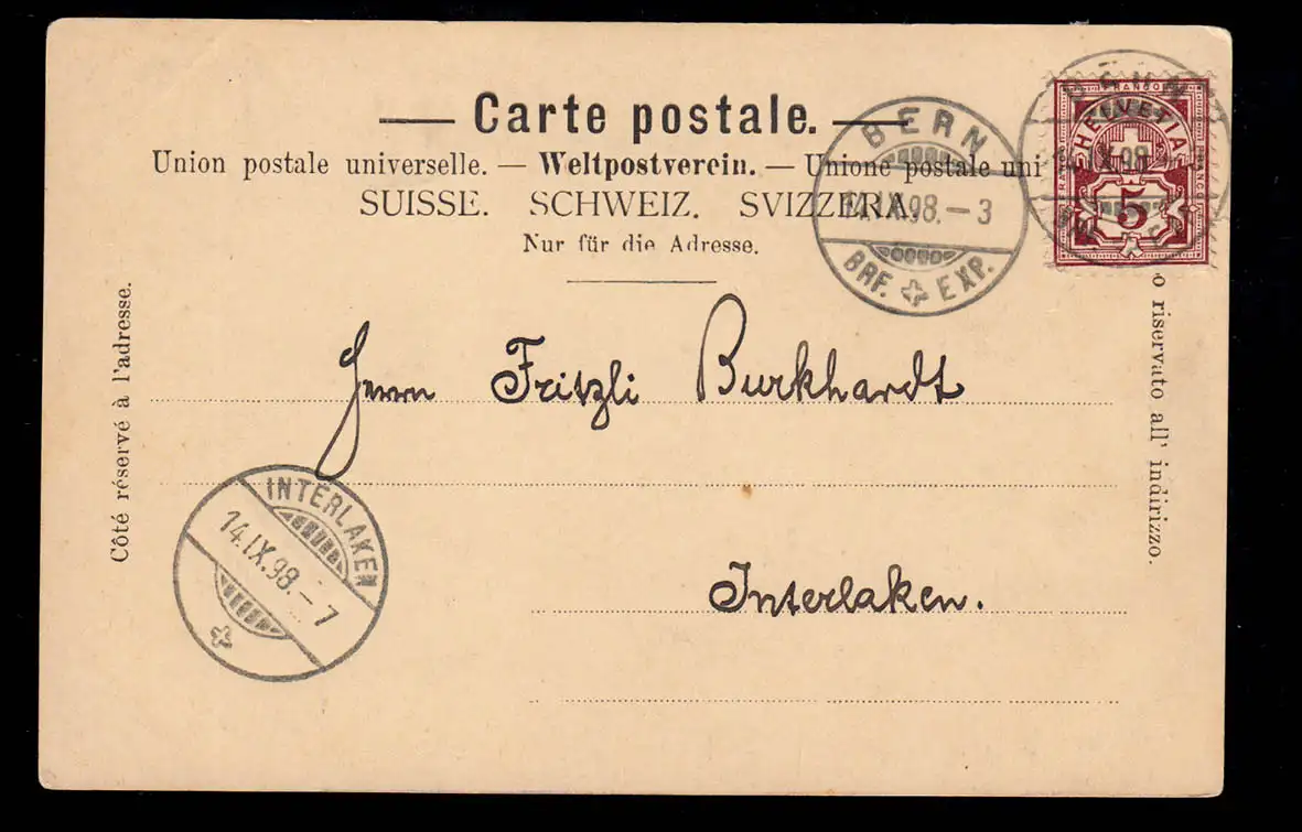 AK Schweiz: Die Nydeckbrücken, mit selbstgemalten Figuren, BERN 14.9.1898