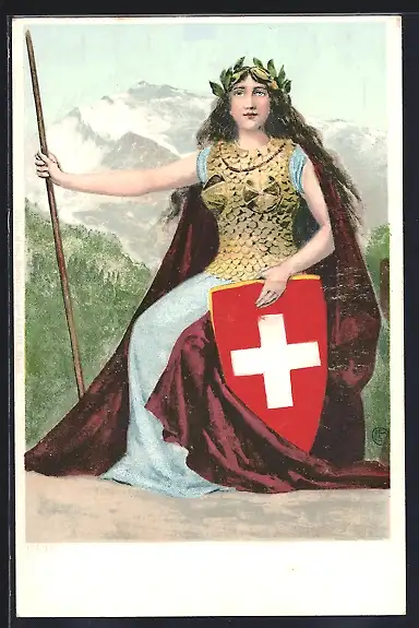 AK Schweiz, Helvetia mit Wappen