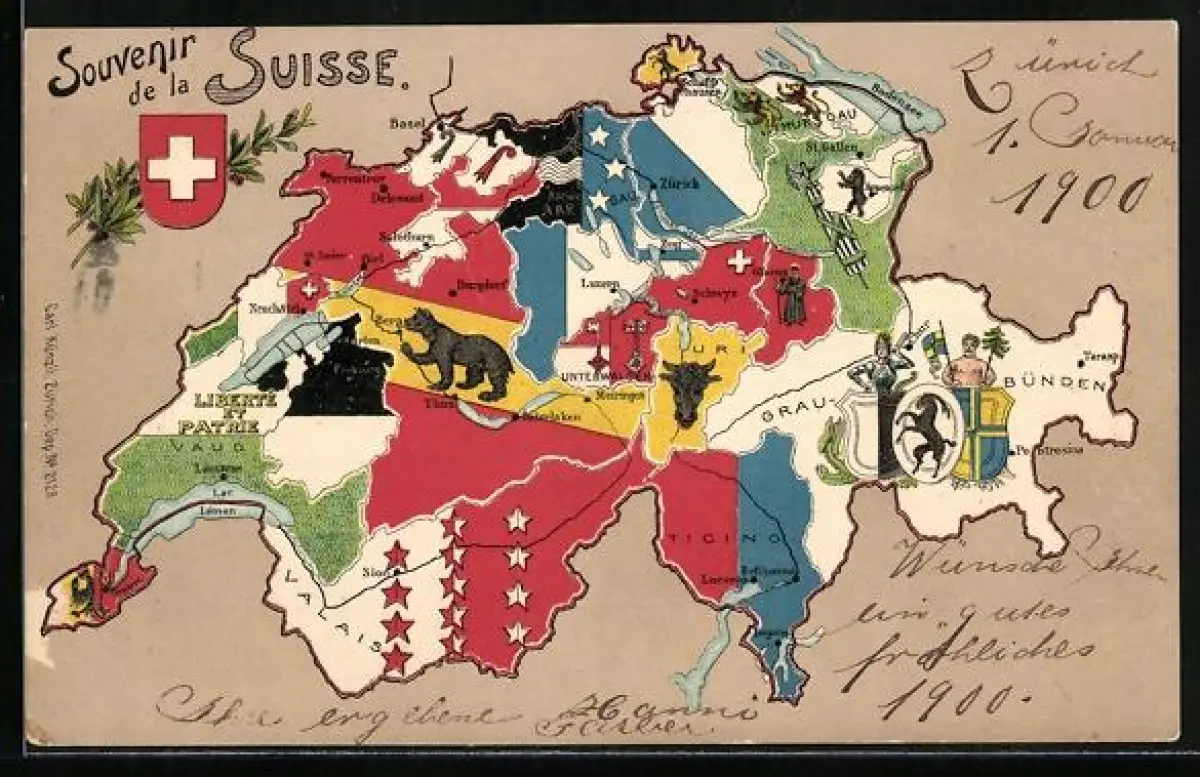 AK Schweiz, Landkarte, Kantone mit Wappen
