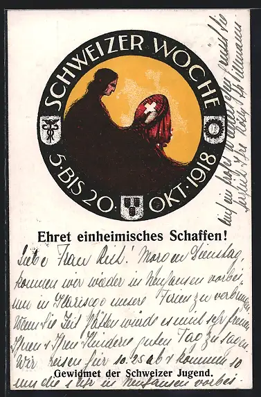 AK Schweiz, Schweizer Woche 1918, Frau bei der Handarbeit