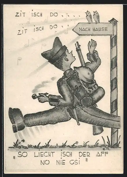 AK Schweizer Soldat am Wegweiser mit Vögeln