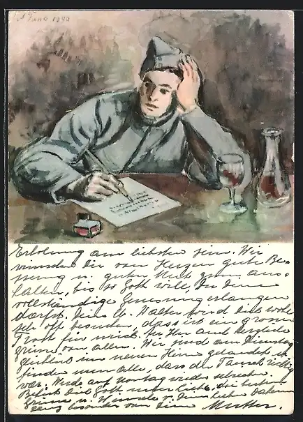 AK Schweizer Soldat in Uniform schreibt einen Brief
