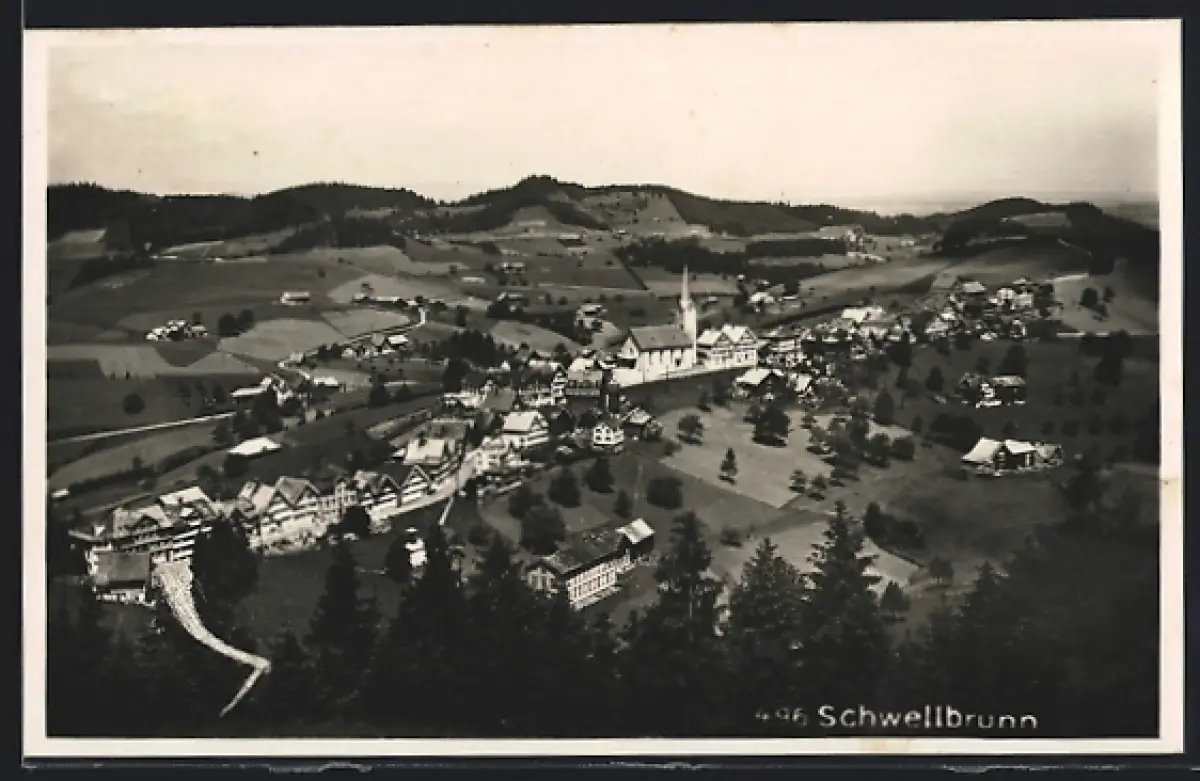 AK Schwellbrunn, Strassenpartie mit Kirche
