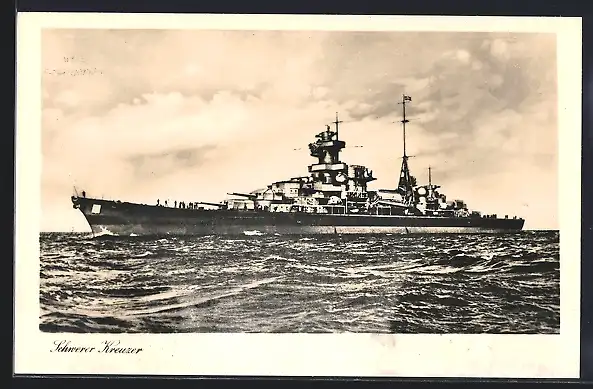 AK Schwerer Kreuzer auf welligem Meer, Kriegsmarine