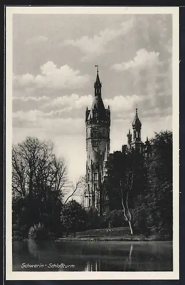 AK Schwerin / Meckl., Schlossturm mit Umgebung