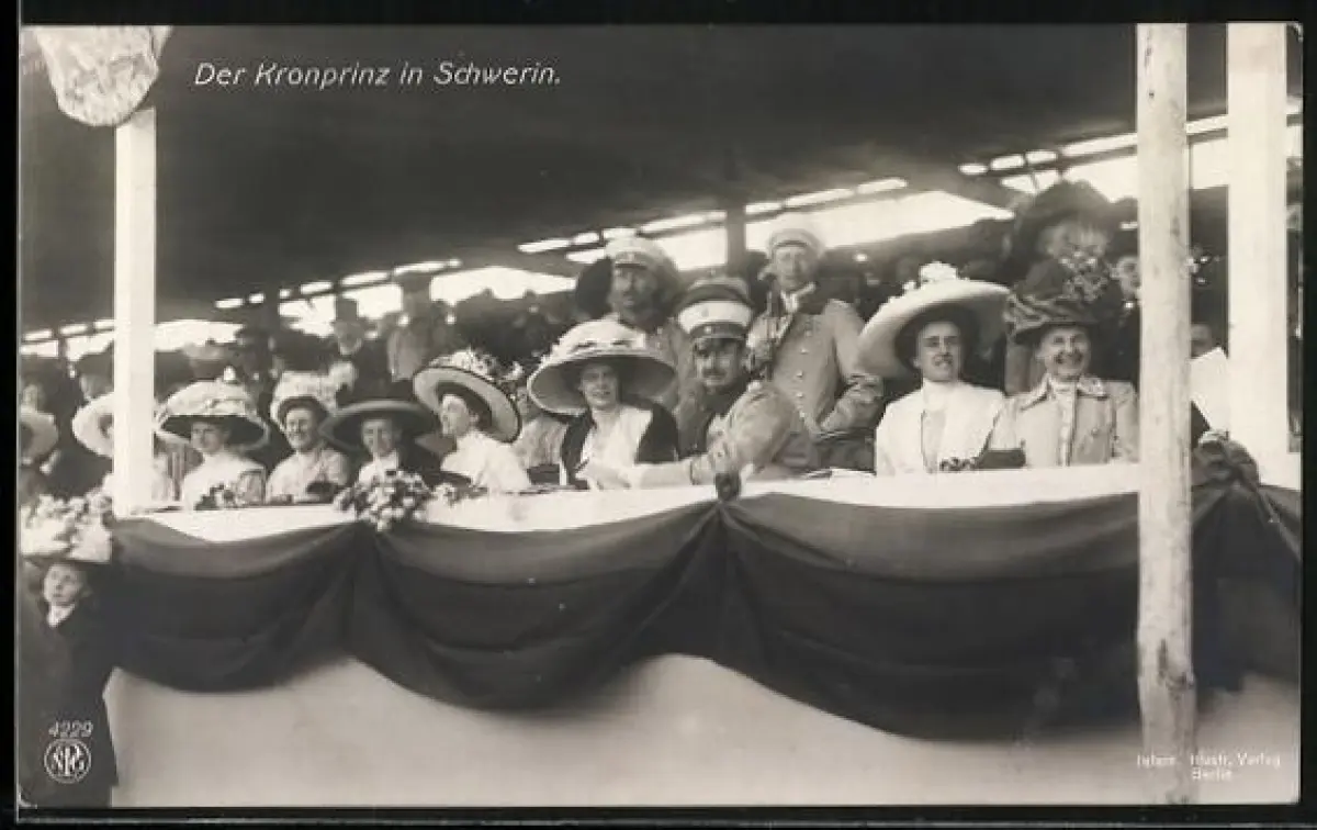 AK Schwerin / Mecklenburg, Kronprinz Wilhelm von Preussen auf einer Tribüne