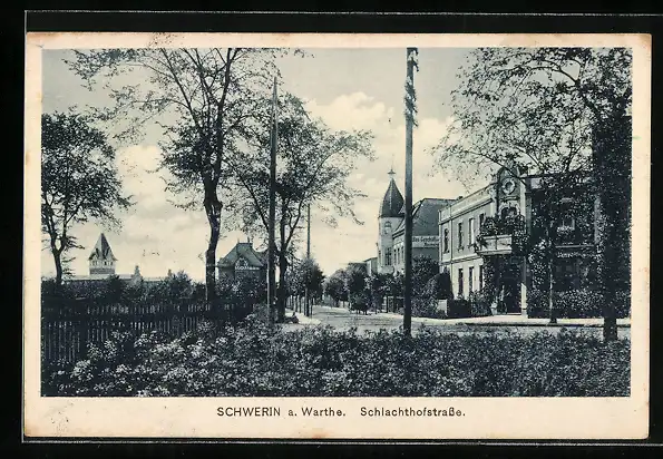AK Schwerin a. Warthe, Blick in die Schlachthofstrasse