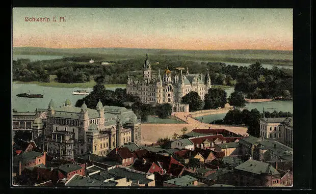 AK Schwerin i. M., Teilansicht aus der Vogelschau