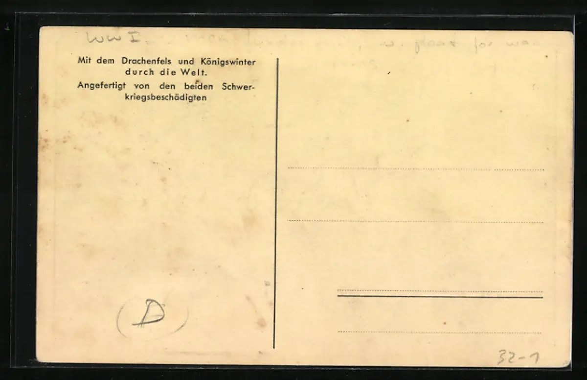 AK Schwerkriegsbeschädigte mit dem Drachenfels und Königswinter durch die Welt