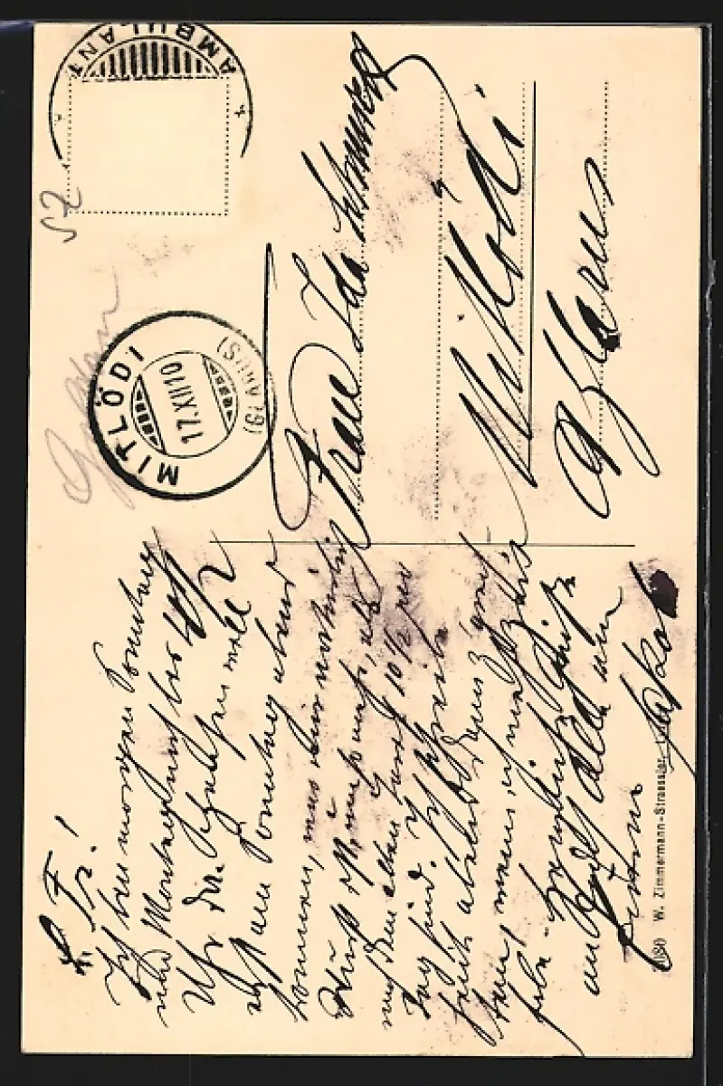 gelaufen 1910, Briefmarke entfernt, guter Zustand