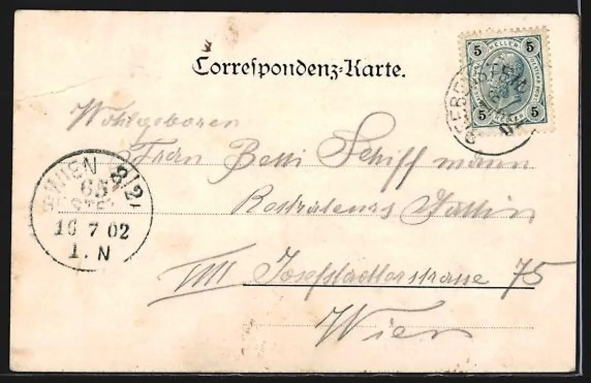 alte Ansichtskarte, gelaufen 1902, Eckknick oben rechts, guter Zustand