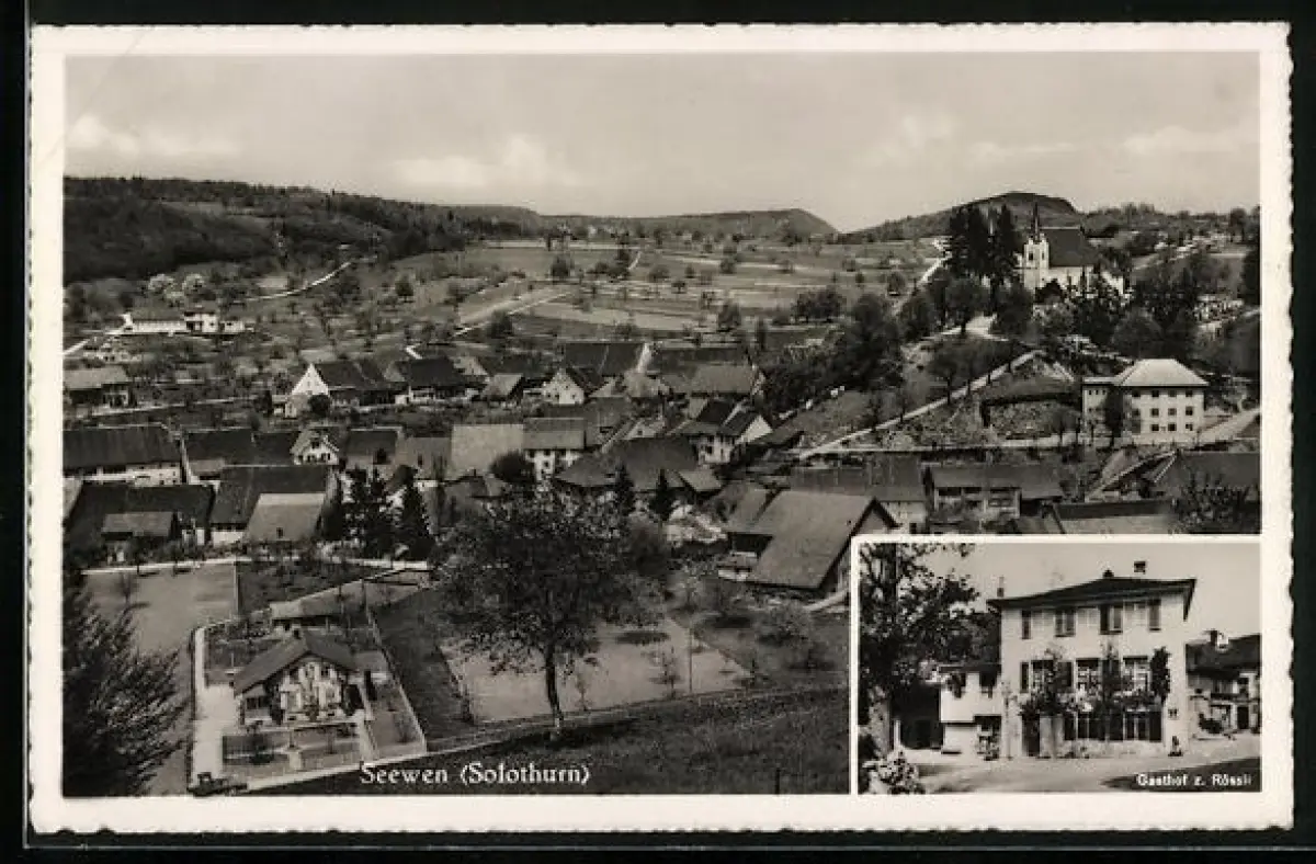 AK Seewen /Solothurn, Gasthof zum Rössli, Teilansicht mit Kirche