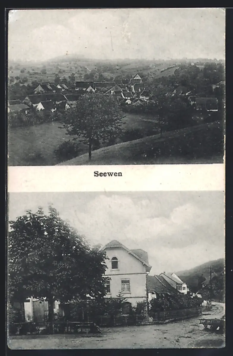 AK Seewen, Totalansicht aus der Vogelschau, Strassenpartie mit Wohnhäusern