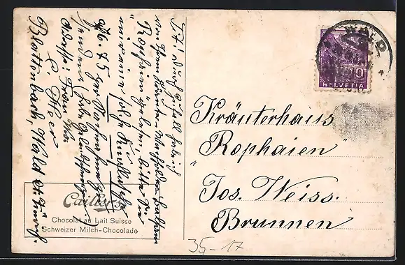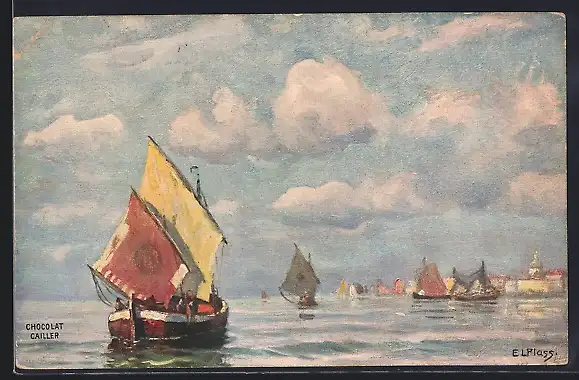 AK Segelboote auf dem Wasser, Chocolat Cailler, Schweizer Milch-Chocolade, Schleichwerbung