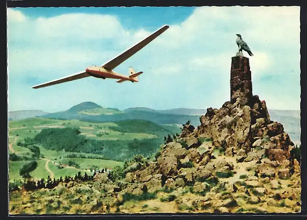 AK Segelflugzeug über dem Fliegerdenkmal Wasserkuppe