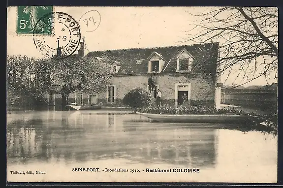 AK Seine-Port, Inondations 1910, Restaurant Colombe