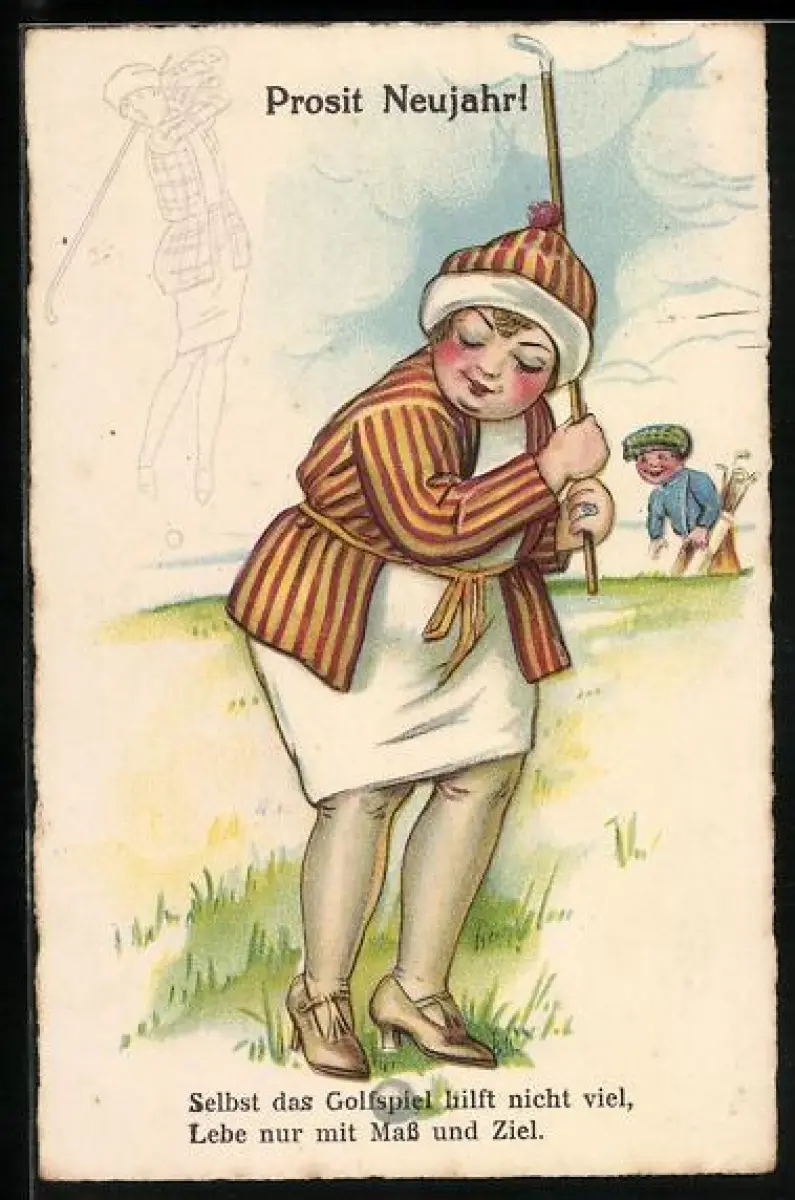 AK Selbst das Golfspiel hilft nicht viel..., dicke Frau spielt Golf