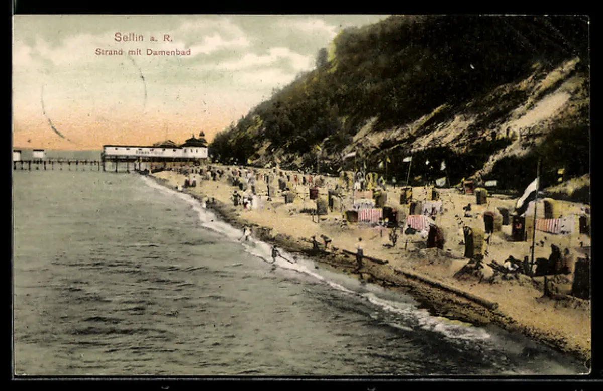 AK Sellin a. R., Strand mit Damenbad