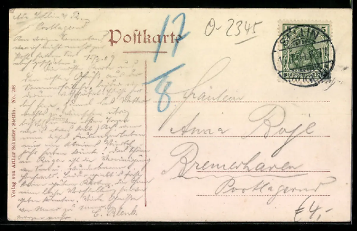 alte Ansichtskarte, gelaufen 1909, Eckknick re. oben, guter Zustand