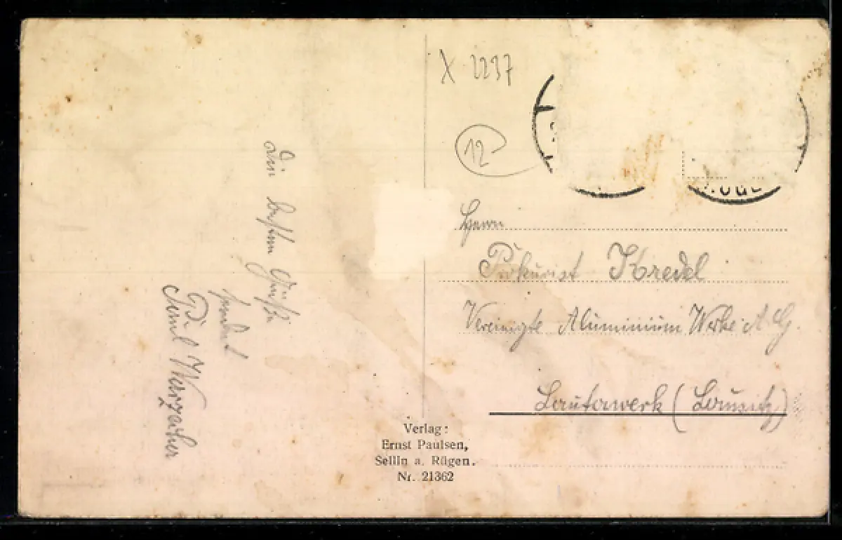 alte Ansichtskarte, gelaufen, Briefmarke entfernt, rückseitig Oberflächenschaden, Eckknick links oben, guter Zustand