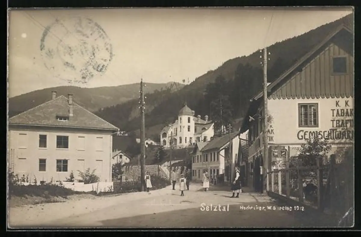 AK Selztal, Gemischtwarenhandlung, Strassenpartie mit Kindern