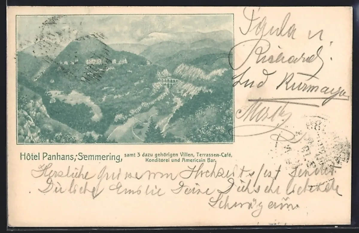 AK Semmering, Hotel Panhans mit Villen u. Viadukt aus der Vogelschau