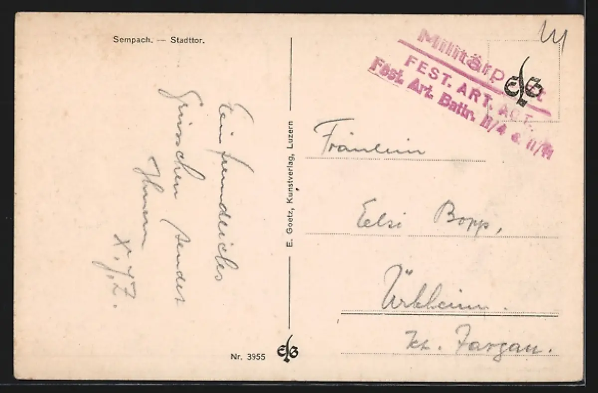 AK Sempach, Stadttor u. Strasse aus der Vogelschau