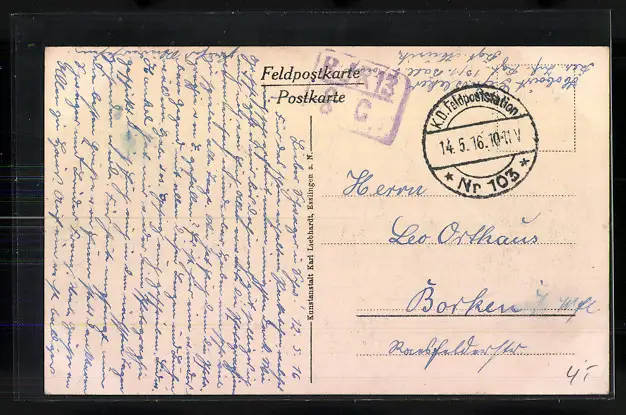 alte Ansichtskarte, gelaufen 1916 als Feldpost, guter Zustand